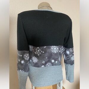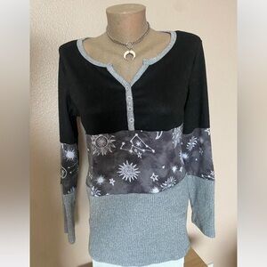 In great condition. Tagged a size large. Pit to pit measurement is about 18” flat- shown unaltered on size small mannequin- will be more fitted on a size large. Material is soft & has some stretch to it as well!