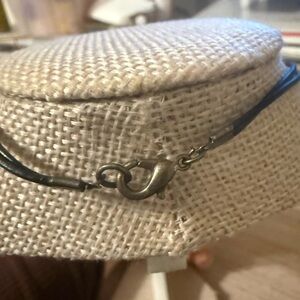 This elegant necklace features a stunning silver and black pendant, perfect for adding a touch of sophistication to any outfit. The intricate design and classic colors make it a versatile accessory for any occasion.