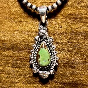 Southwestern Sonoran Gold Turquoise Pendant Sterling Silver 925 Handmade