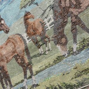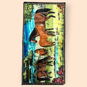 Super cool vintage and retro / soft velour velvety fabric / super colorful / nature equestrian horses