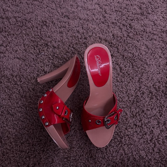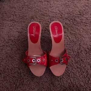 Step out in style with these chic red heeled sandals from . Perfect for any occasion, these shoes feature a bold red color and stylish buckle accents.