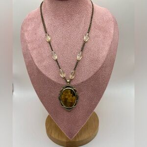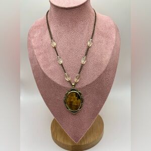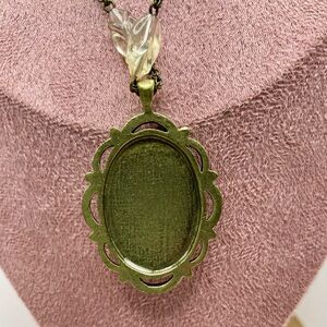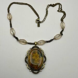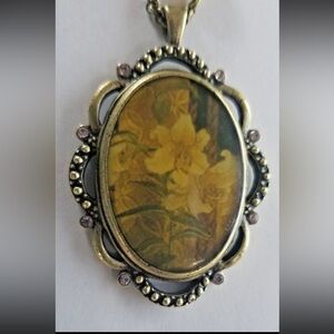 SOLD! Antique Gold Plated Chain Necklace Vintage Victorian Pendant Asiatic Lilies. Chain has a hang tag that says “FI” not sure exactly what it means. But I believe it means “First Issue”.