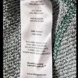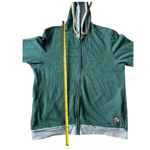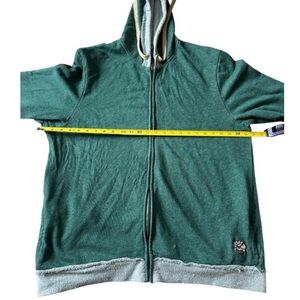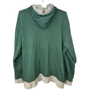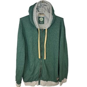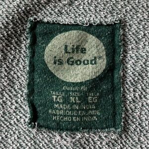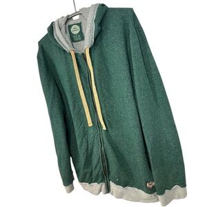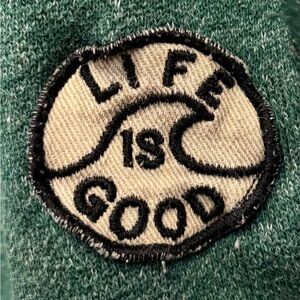 Comfortable Life is Good full zip sweatshirt with a hood. Features green body and gray accents. Ideal for casual wear. Size XL