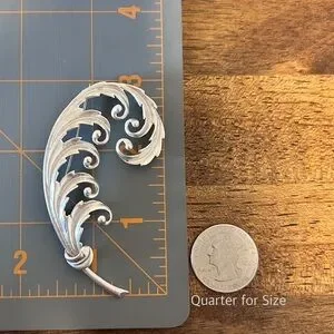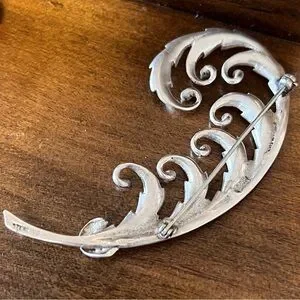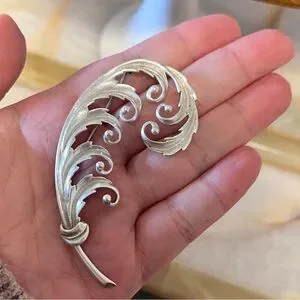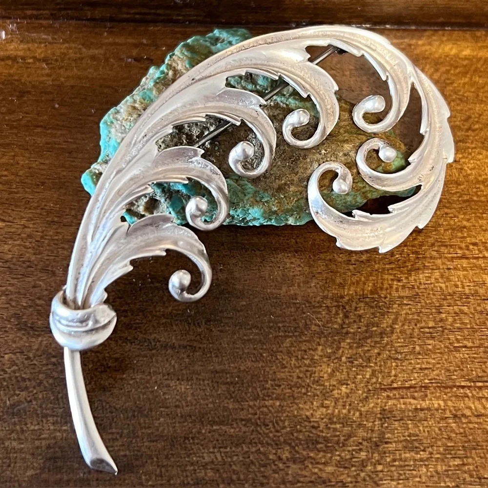 Vintage Sterling Silver 925 Feather Hat Pin Brooch Dress Pin