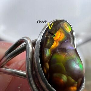 Upon close inspection, there is a small shallow mark on one side of the stone’s surface ( I Marked) It is not very noticeable when worn, but please review before purchasing.