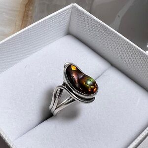 Gorgeous Kidney Shape Fire Agate Vintage Handmade Ring / Signed Artist Hall Mark and Sterling