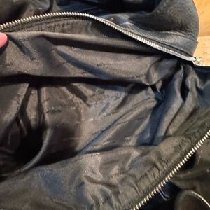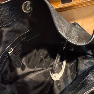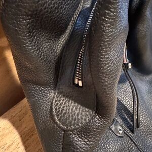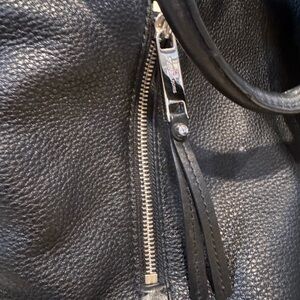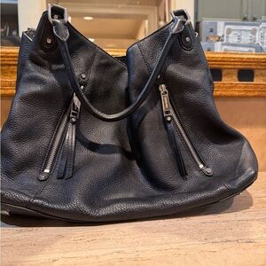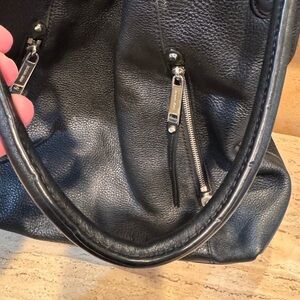 EUC. See photos for call outs. Chic black leather shoulder bag with zipper details. Ideal for daily wear.