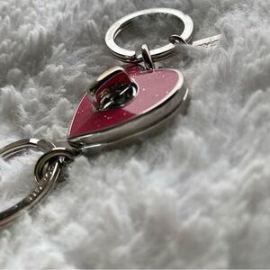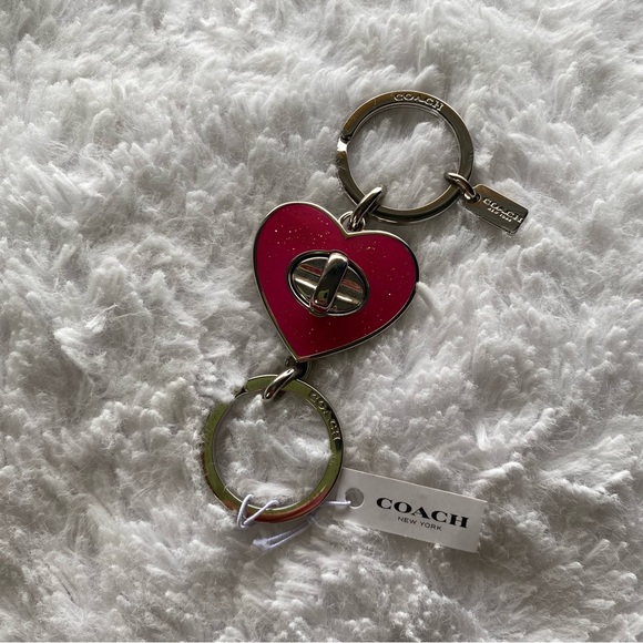 New with Tags Coach Pink Glitter Enamel Turnlock Heart Keychain Bag Charm