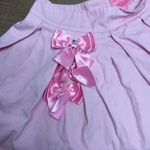 Pink Sugar Thrillz mini skirt with pleated design and satin bow details accented with rhinestone 💕 Super cute and girly, perfect for Y2K or coquette vibes.