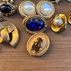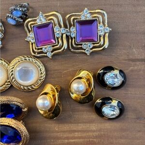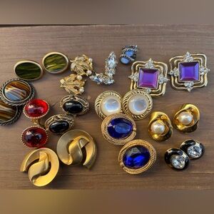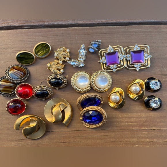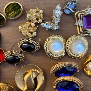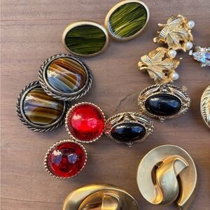 This is a fun Lot Of 13 Vintage Clip On Earrings. Very bright, bold and colorful. Great for crafting or wearing. I’d recommend replacing some of the small cushioned backs if you’d like to wear them.