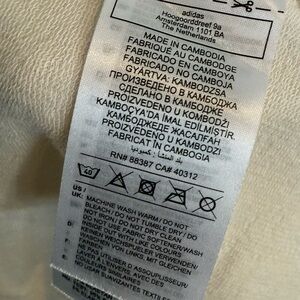 Preowned condition, minor flaw shown in the last picture. Barely noticeable, discoloration spot near the logo on the front of the dress.