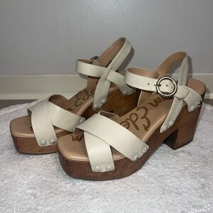 Step out in style with these chic cream platform sandals. Perfect for any occasion, these shoes offer both comfort and elegance.