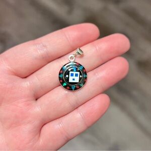 Southwestern Galaxy Multi Stone Inlay Pendant for Necklace Sterling Silver 925