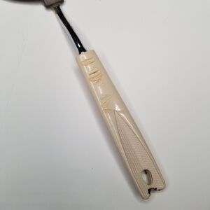 It is a mid-century kitchen utensil, in good condition with melt marks on handle. Review photos carefully.