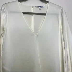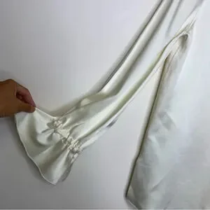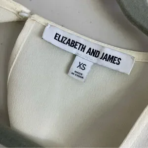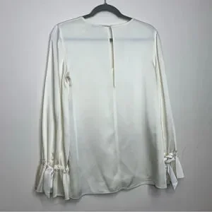 Elizabeth and James Satin Off White Ruffled Cuffs Long Sleeve Blouse Size XS B034