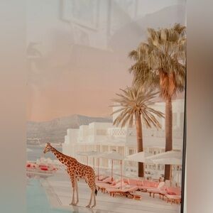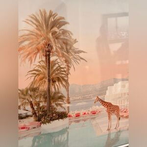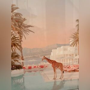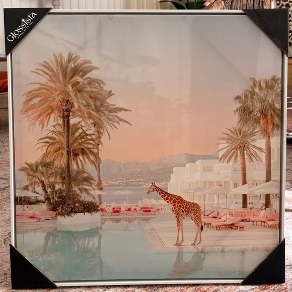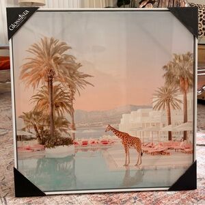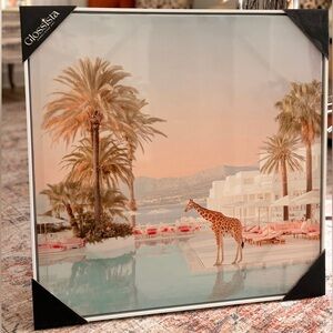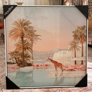 GlossStar art print featuring a giraffe by the pool. Beautiful blend of colors. White frames. Measure Aprox 23β x 23β π¦