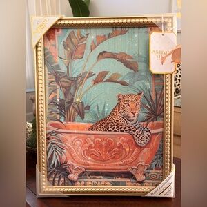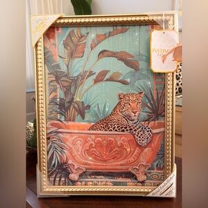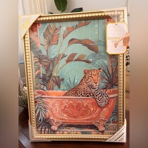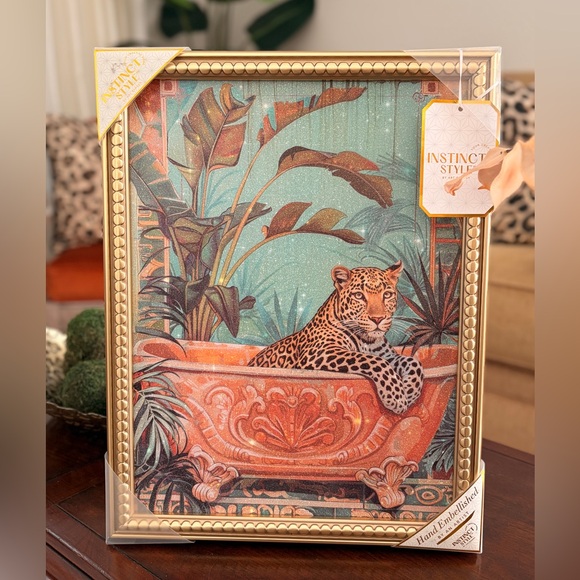 Enhance your home with the Leopard Wall Art. Featuring a striking leopard design in a luxurious gold frame, this piece adds a touch of elegance to any room.