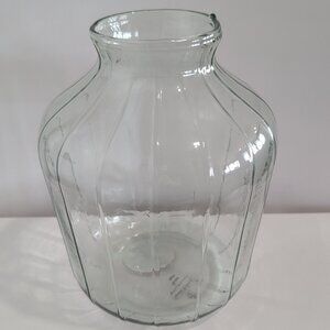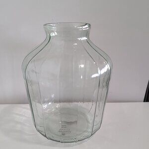 The Hearth & Hand with Magnolia Ribbed Vase is a 9.5 inch tall table vase made of glass. It features a round shape with a ribbed design, making it a decorative piece for any room in your home. Easy to care for with instructions to clean with a damp cloth and hand wash only, this vase is perfect for displaying flowers or floral arrangements. Add a touch of elegance to your space with this stunning and practical home décor item from Magnolia.