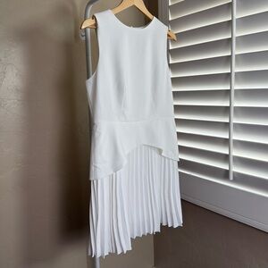 Commense White Pleated Hem Mini Dress Large NWT Sleeveless