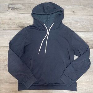Comfortable dark gray track pants and hoodie set. Perfect for casual wear. Features drawstring hoodie and elastic waist pants.