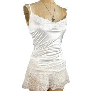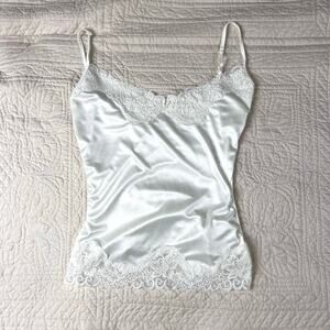 Cami Top, Satin Cami, Lace Trim, Sequin Details, White Camisole, Coquette, Fairycore, Y2K, 90s Aesthetic, Dainty, Ethereal, Bridal, Lingerie Top, Balletcore, Angelic, Soft Girl, Romantic, Vintage Inspired, Size XS