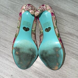 The Betsey Johnson Adley Heels in size 8B are a whimsical and feminine choice for any special occasion. With a peep toe design and high stiletto heel, these floral garden party heels feature embroidered accents and a colorful multicolored pattern. Made with synthetic materials, leather lining, and a breathable synthetic insole, these romantic and vibrant heels are perfect for weddings, parties, or even casual or formal events during the spring, summer, or fall seasons. The Betsey Johnson brand adds a touch of luxury to these stylish and eye-catching heels.