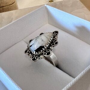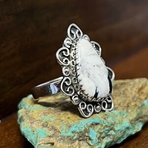 Southwestern White Buffalo Turquoise Handmade Ring Sterling Silver 925 Size 7