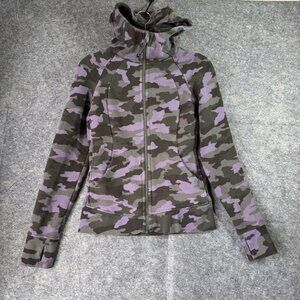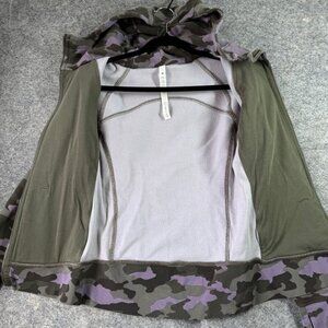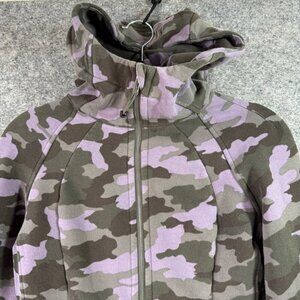 Lululemon Scuba Hoodie Full Zip Camo Print Sz 6 Purple Green Fleece Lined