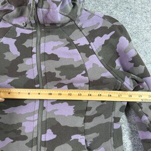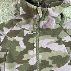 lululemon scuba, camo hoodie, lululemon size 6, lululemon fleece hoodie, zip up hoodie, lulu purple camo, workout hoodie, gym hoodie, athletic hoodie, cozy hoodie, full zip sweatshirt, fleece-lined activewear, lululemon essentials, rare lululemon print