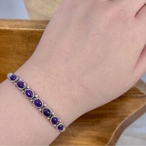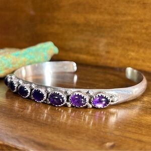 Native American Vintage Amethyst Cuff Bracelet Sterling Silver Handmade