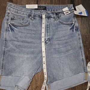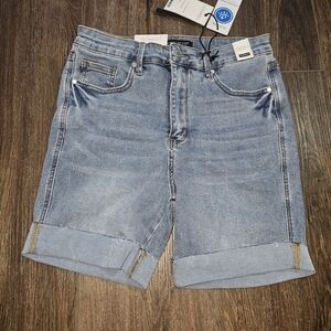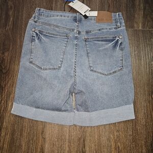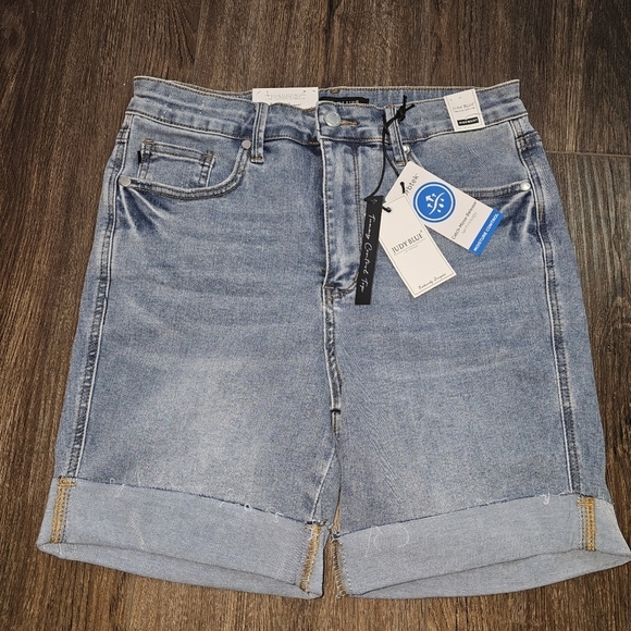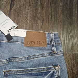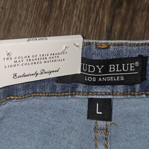 These Judy Blue Women's Tummy Control High Waist Denim Shorts in a medium wash are a stylish and versatile addition to any wardrobe. With a high-rise cut and slimming features, they are perfect for casual occasions and activities like walking or heading to the beach. Made from a comfortable and stretchy cotton blend denim, these shorts also have a 5-pocket design for added convenience. Whether it's for the summer, fall, or spring, these shorts in size large are a classic and preppy choice for any season.