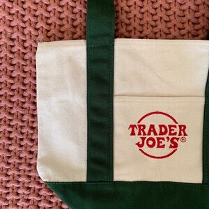 Elevate your daily carry with this Trader Joe's tote bag. Featuring a chic green and cream design, it's perfect for all your essentials.