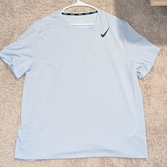 The Nike AeroSwift Dri-FIT ADV Short Sleeve Running Top is a high-performance activewear piece designed for men. Made from 100% polyester blended fabric, this top features moisture-wicking and breathable properties perfect for running, training, and other athletic activities. The pullover style with a band collar and short sleeves ensure a comfortable fit, while the ghost color and Nike logo accents add a sporty touch to the design. This top is machine washable and offers a lightweight feel, making it a great choice for summer, fall, and spring seasons.