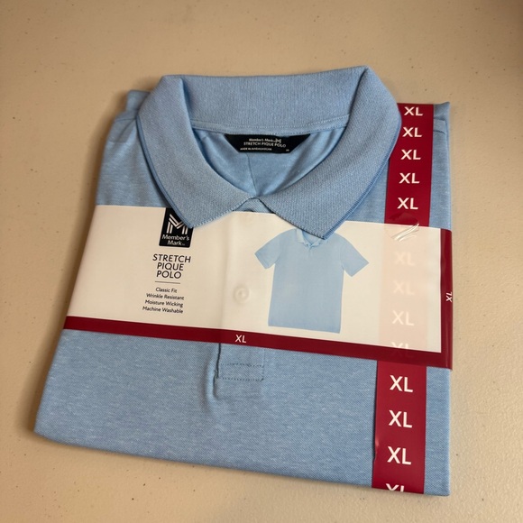 Men’s Member’s Mark stretch piqué polo in a classic, clean style.