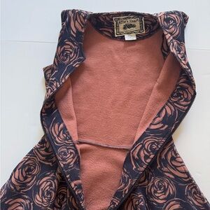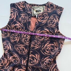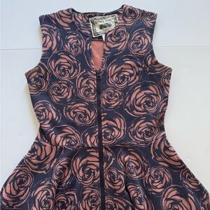 Features a flattering sleeveless cut and full skirt with a front zipper for an edgy retro vibe.