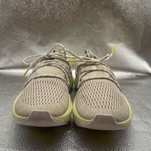 These are low-top sneakers featuring a breathable air mesh upper with no-sew TPU film overlays for durability. The lacing system is designed to wrap around the shoe for a secure fit, and there are reflective webbing details on the heel pull tabs.