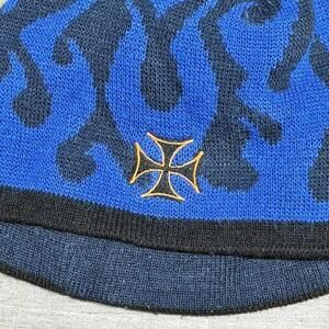 INSANE Blue and Orange West Coast Choppers Flames Embroidered Iron Cross Logo Beanie