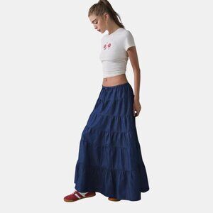 URBAN OUTFITTERS UO CAYSIE TIERED LOW-RISE DENIM MAXI SKIRT NWT SIZE XL