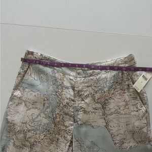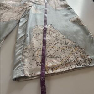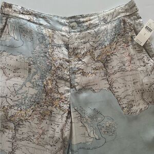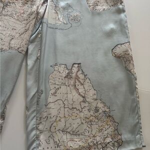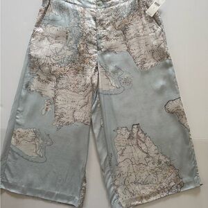 Gorgeous Mauve travel pants from Anthropologie featuring a unique map print and flattering cropped pedal pusher style. Super chic and perfect for traveling, airport outfits, vacations, brunch, or everyday wear.