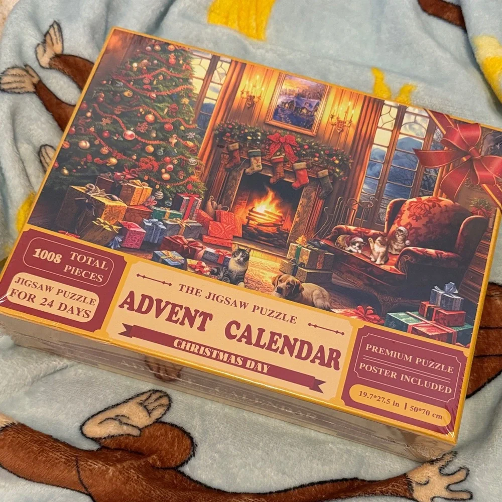 1008-piece jigsaw puzzle featuring a festive Christmas scene. Includes a poster for easy assembly.