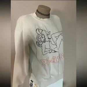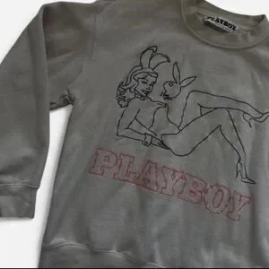 In great condition. Tagged a size small (mens) - fits women’s size small comfortably- as shown on mannequin. Color is a cream white & “Playboy” is embroidered in a peachy pink color. Very nice quality!