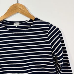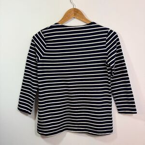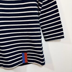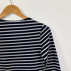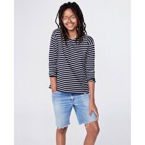 KULE Women's The Boyfriend 3/4 Sleeve Striped Cotton Top Navy Blue Cream Size L