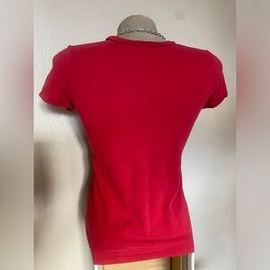 In great condition. Tagged a size small, fits true to size. Measurements: pit to pit- 15” flat , length- 21.5”.