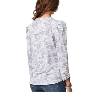 Democracy Women's 3/4 Puff Sleeve Scoop Neck Camo Top