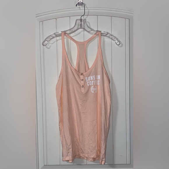 Chic tank with button accents. Soft and comfortable. Ideal for everyday wear. Runs on coffee
