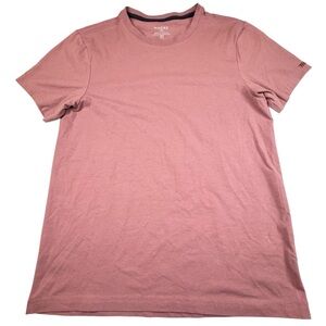 The RHONE Men's Size Medium T-shirt in Mulberry is a stylish and comfortable piece made from a blend of organic cotton. With a solid purple color, short sleeves, and a crew neck, this shirt is perfect for the summer, fall, and spring seasons. The knit fabric type and lightweight, stretchy, breathable features make it ideal for outdoor activities or everyday wear. Manufactured in Peru in the 2020s, this T-shirt is a classic and versatile addition to any man's wardrobe.