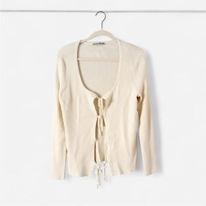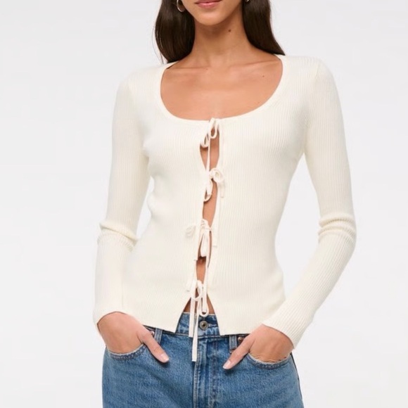 Super cute and comfy Abercrombie & Fitch slim ribbed tie-front cardigan in cream !!!