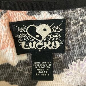 Features Asian inspired floral print with Chinese knit buttons at v neckline