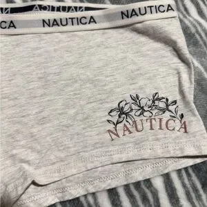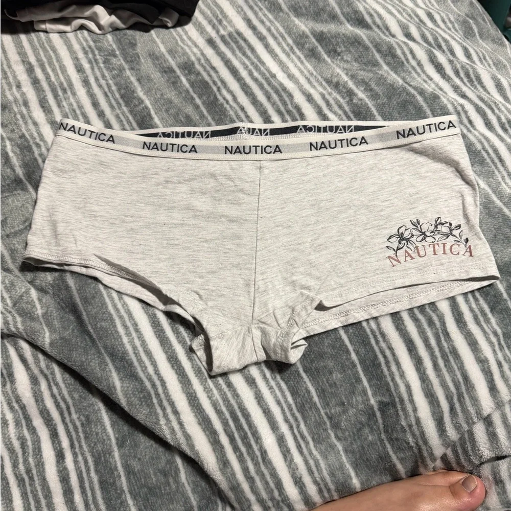 Light gray panties with floral print. Nautica logo on waistband. Soft and comfortable.