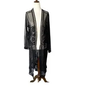 BOUTIQUE Embroidered Lace Kimono Duster Top 1XL Black